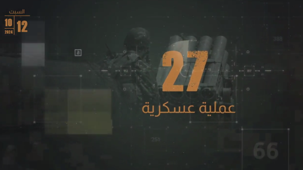 On Saturday, October 12, 2024, the Islamic Resistance carried out 27 military operations in direct response to ongoing Israeli assaults and in defense of Lebanon and its people. The majority of these strikes targeted Israeli settlements, military sites, barracks, and troop concentrations along the Lebanese–Palestinian border, utilizing a coordinated barrage of precision-guided rockets and artillery.